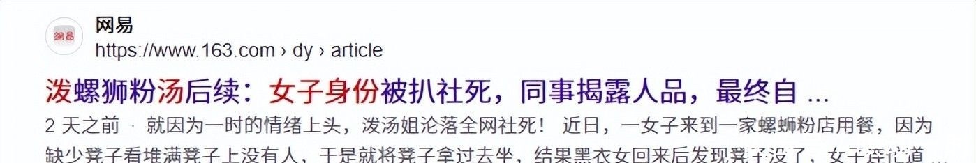 3.网易网:泼螺狮粉汤后续:女子身份被扒社死,同事揭露人品,最终自食恶果